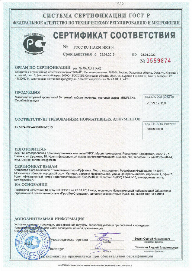Состав гибкой черепицы Ruflex